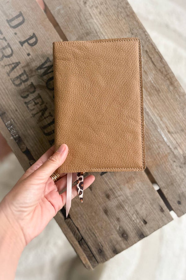 Deze handgemaakte bijbelhoes beschermt je bijbel en heeft een mooie, tijdloze uitstraling met die kenmerkende leergeur. Een stijlvolle en duurzame keuze om je bijbel mee te nemen en te bewaren.