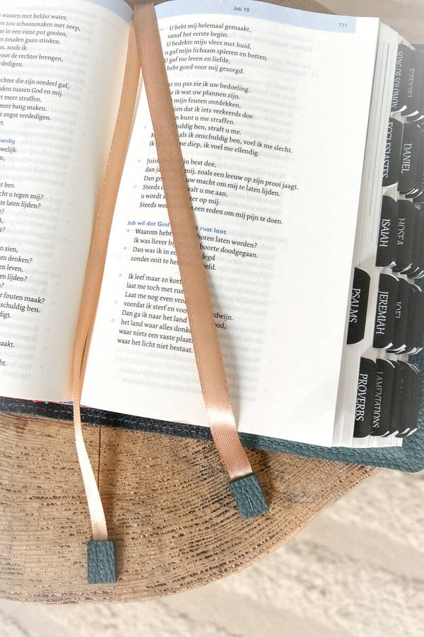 - hartje of ander figuurtje van leer aan leeslint 2,50 (per lint)